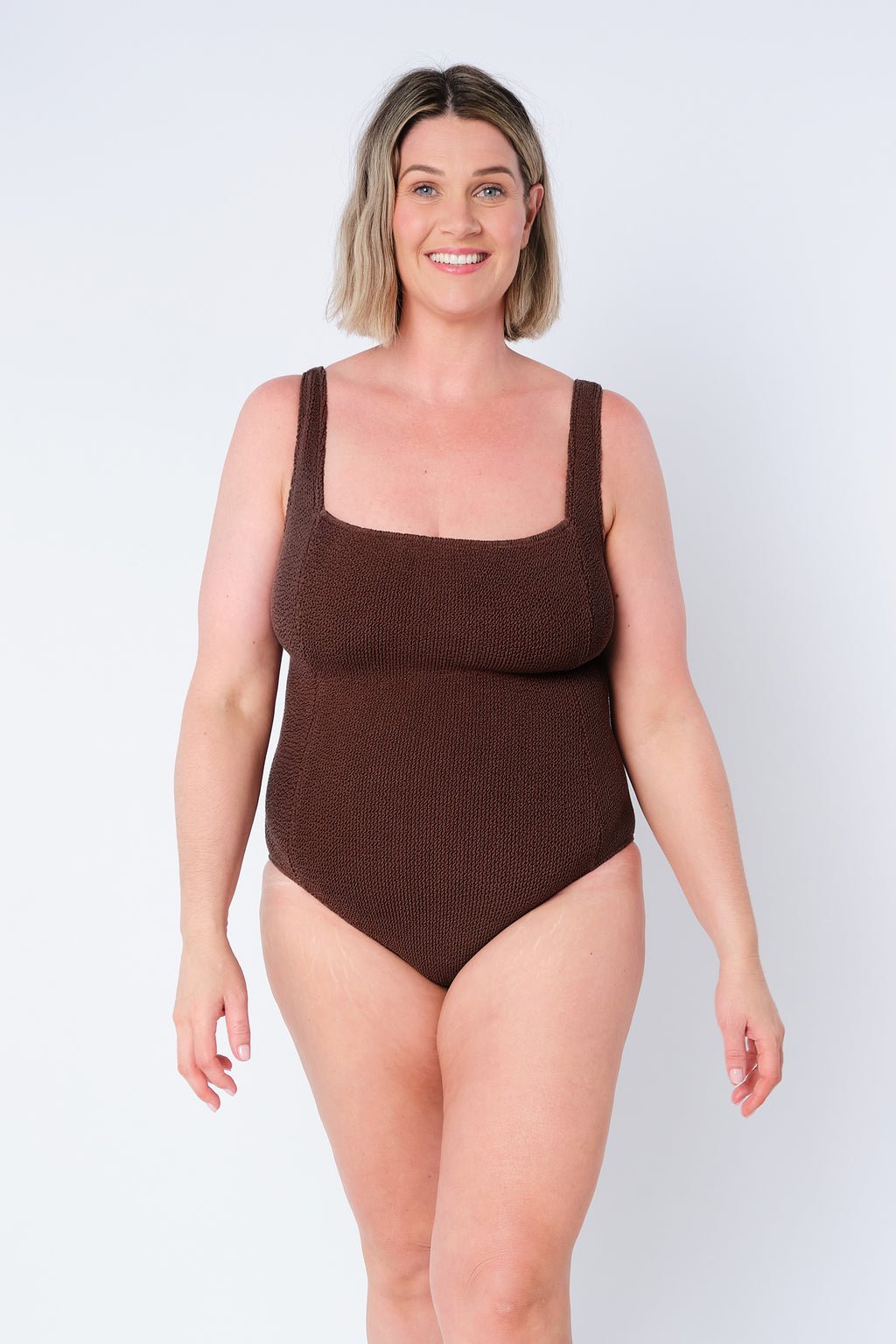 A new classic. Featuring our exclusive Crinkle Cut fabrication, built-in bust support, fully adjustable leg height and good bottom coverage. It's the most luxurious swimwear you will ever own.