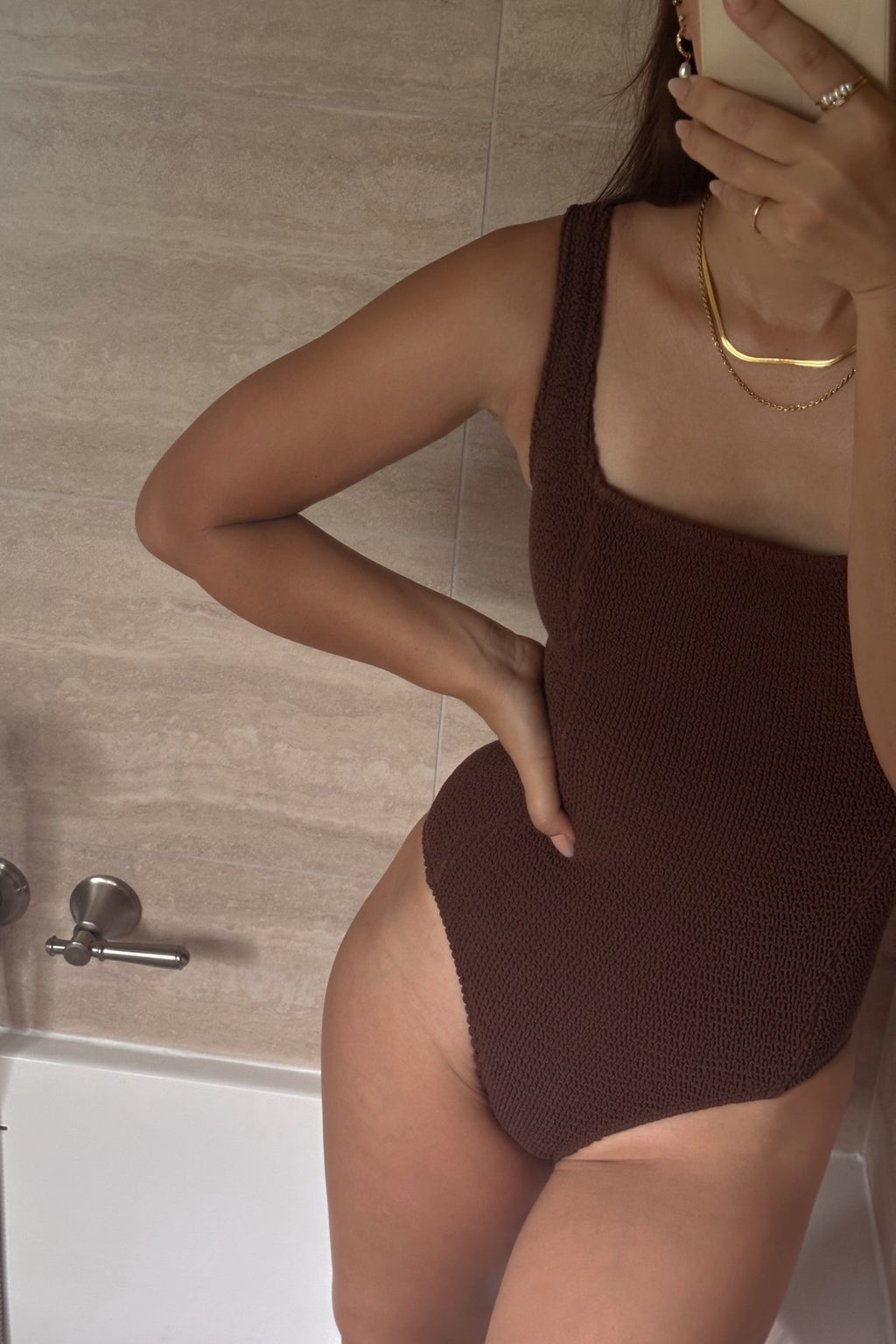 Our model wears size AU 8. She is 179cm (5'10.5") tall with an 84cm (33") bust, a 69cm (27") waist and 94cm (37") hips. Our second model wears size AU 16 (US 12) and is 175 cm (5ā9ā) tall.