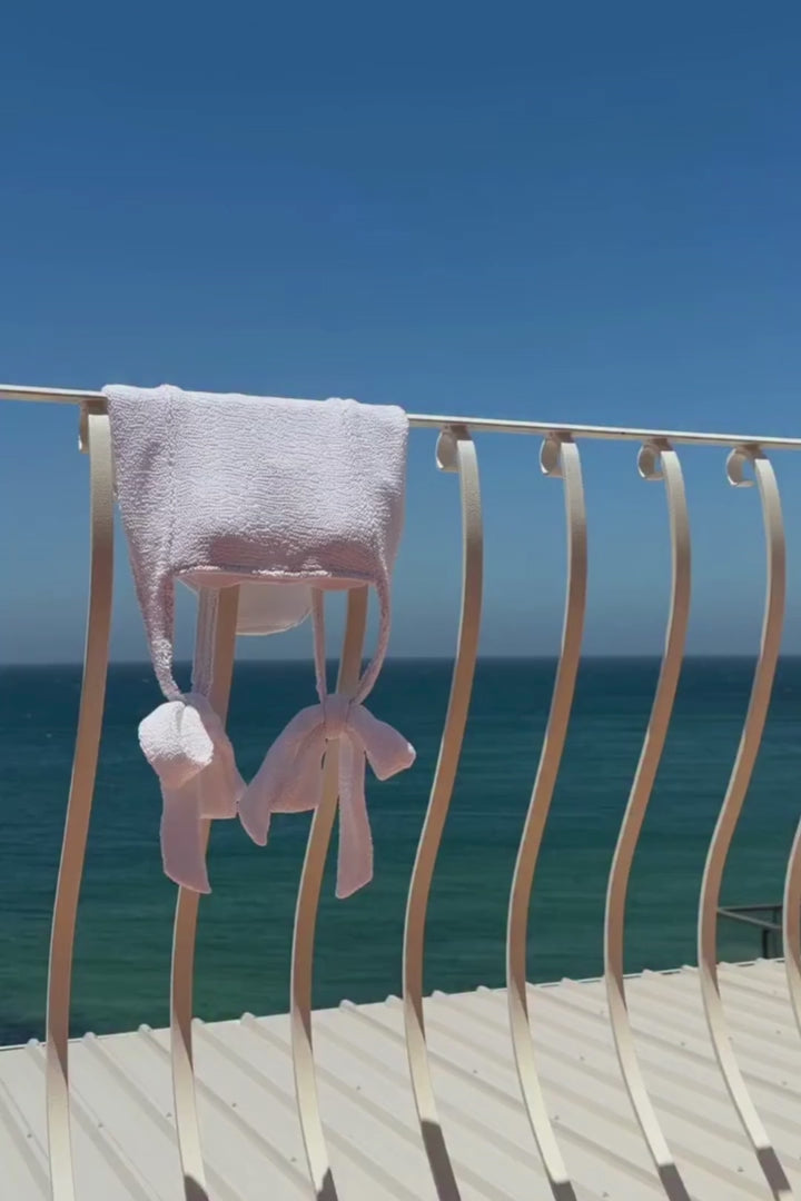 Exclusive UNE PIECE Crinkle Cut Swim fabric made with recycled materials